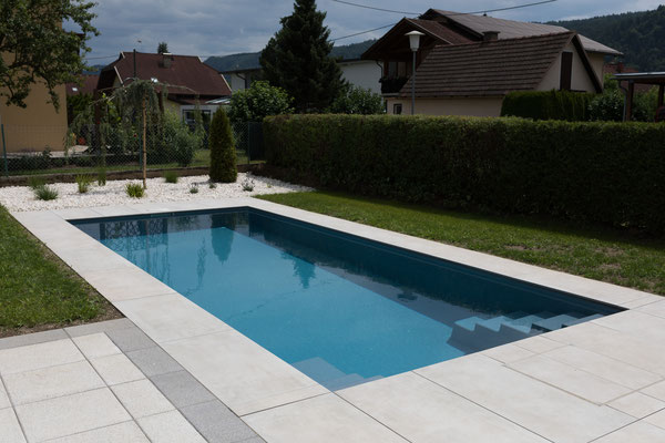- Schmale Bauform, Pool Außenbreite lediglich 3 m