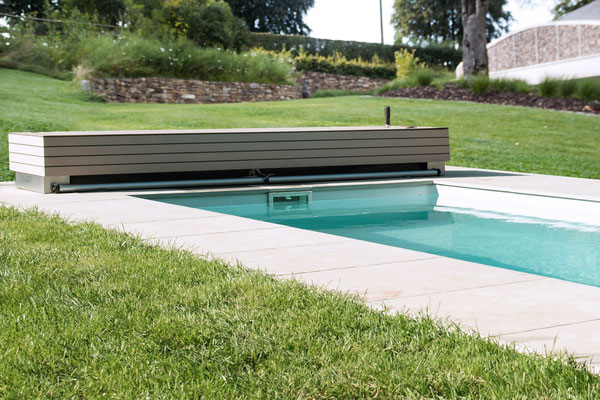 Der Beckentyp UNICO RC steht für ein einzigartiges und kompaktes Pool-Konzept. Die Idee dahinter: Eine Komplettlösung nicht nur für kleine Gärten. Die integrierte Rollschutzabdeckung, ein einladendes Sonnendeck aus hochwertigen Materialien und der LEIPO flatSKIM KS gehören zur Standardausstattung. Die am Stein aufliegende Poolabdeckung ist im geschlossenen Zustand absolut kindersicher und durch ein Kurbelsystem leicht zu bedienen.