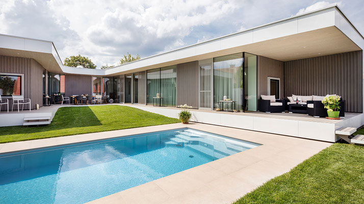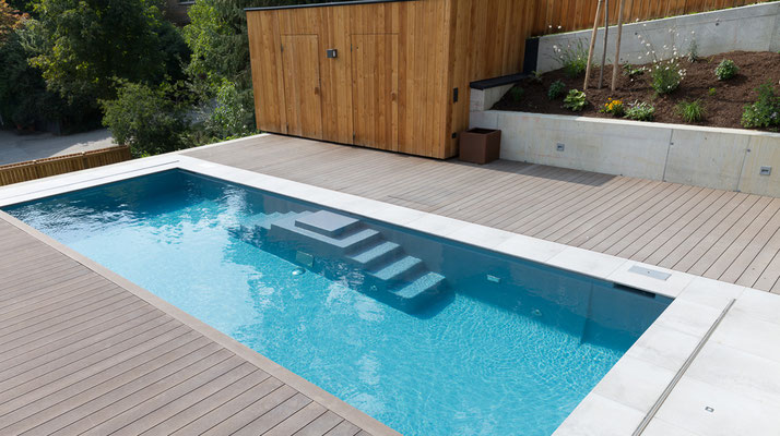 Visionen muss man leben – unter diesem Motto entstand in Kooperation mit dem Designbüro KISKA ein Pool der Extraklasse. Klare Linien, unverwechselbare Charakteristik und das Zusammenspiel hochwertiger Materialien verleihen dem Pool nobles Understatement.