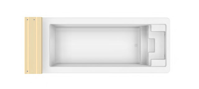 2 Stufenauftritte können wahlweise links oder rechts montiert werden. Eine großzügige, integrierte Flachwasserzone –flatZONE – lädt zum Genießen ein und ermöglicht darüberhinaus einen angenehmen Einstieg in den Pool.